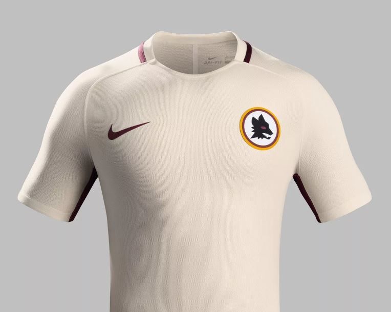 La Roma ha svelato la maglia da trasferta della stagione 2016-2017. La nuova divisa rispecchia il bellissimo mosaico di colori che si può ammirare sui monumenti della città: il marmo, la sabbia e la pietra usati per costruire le antiche strutture del Foro romano e di tutta l'antica Roma. Per la prima volta dal 2012-13, sul petto della maglia away torna il Lupetto, stemma del club per 19 stagioni dal 1978-79 al 1996-97. Il ritorno dello stemma bordato in giallorosso è un tributo al 90° anniversario della fondazione del club che ricorrerà nel 2017.