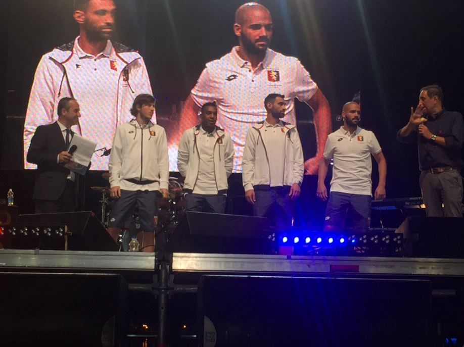 Oltre diecimila tifosi del Genoa hanno festeggiato alla Fiera del Mare i 123 anni della società rossoblù, alla presenza della squadra e del presidente Preziosi. Che ha sottolineato come "alcuni giocatori hanno rifiutato il triplo del l'ingaggio per restare al Genoa". Ornella Muti e la figlia Naike Rivelli madrine della serata. Autentica ovazione per il tecnico Ivan Juric. Tra i più apprezzati dal pubblico rossoblu anche il capitano Nicolas Burdisso. Foto genoacfc