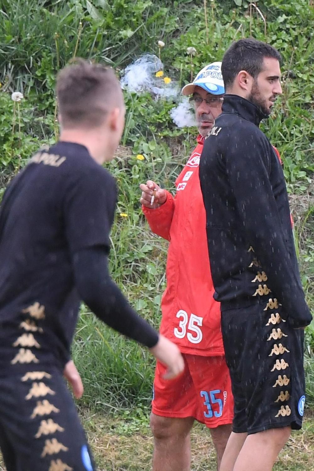 La squadra di Sarri ha svolto l'allenamento della vigilia in vista della sfida contro il Besiktas sotto la pioggia.