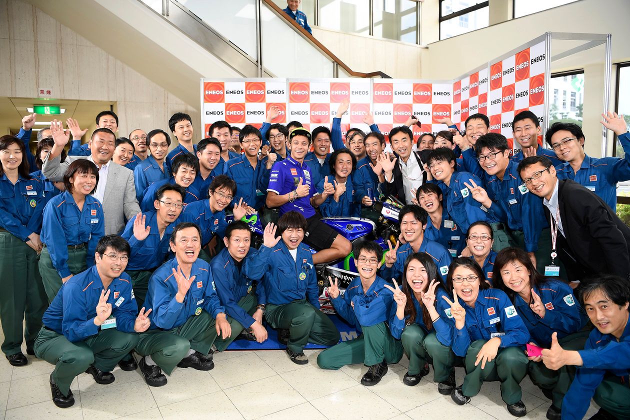 Il dottore con il camice. Valentino Rossi abbandona la classica tuta da corsa per la visita allo stabilimento dello sponsor Eneos, compagnia petrolifera giapponese. Dopo essere arrivato a bordo di una 500 Abarth, Rossi è stato accolto da 150 dipendenti che gli hanno anche dedicato uno striscione. La visita, avvenuta circa due settimane fa prima del Gp di Motegi, ha ufficializzato la collaborazione con la Yamaha.