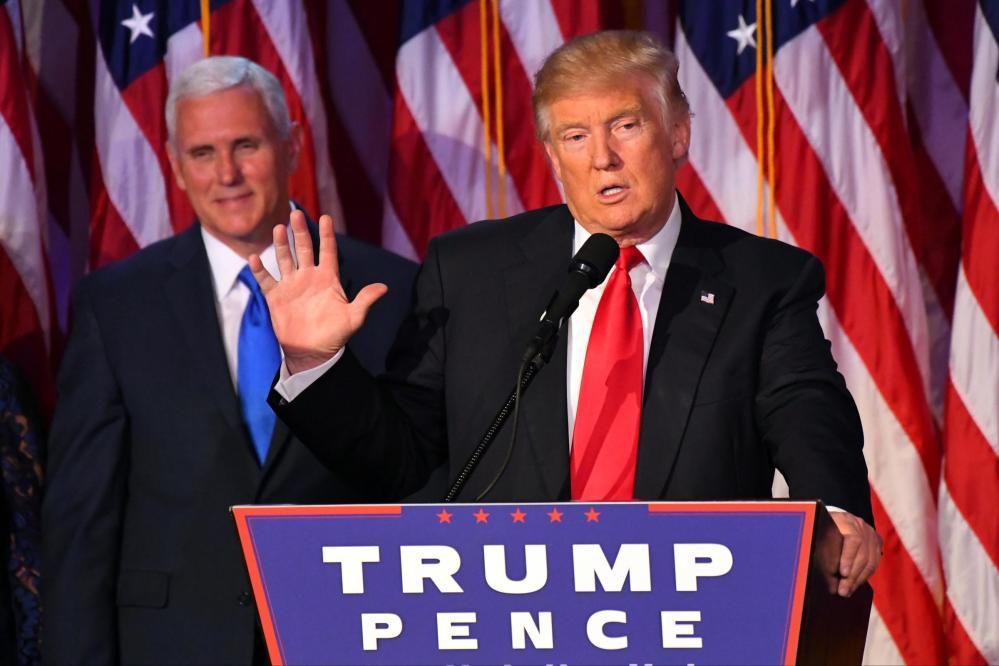 Donald Trump è salito sul palco con la famiglia al completo, visibilmente emozionato, per il primo discorso dopo la vittoria elettorale nelle presidenziali Usa. Con lui nella sala dell'Hilton hotel di New York Melania, la nuova first lady vestita di bianco, e tutti i figli. Come colonna sonora la musica di Independence Day.