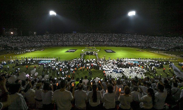 Migliaia di persone si sono riversate nella notte nello stadio Atanasio Girardot di Medellín, in Colombia, per rendere omaggio alla squadra brasiliana del Chapecoense, i cui giocatori sono rimasti vittima di un incidente aereo lunedì scorso. All'inizio del tributo sono state liberate al centro del campo 71 colombe a ricordare le vittime del disastro, da cui si sono salvate solo sei persone. La folla ha osservato un minuto di silenzio in memoria "dell'eterno Chapecoense". Poi, tra le lacrime, i presenti hanno rotto il silenzio e hanno iniziato a gridare 'Vamos, vamos Chape'. Sugli spalti campeggiavano alcuni striscioni con scritte come 'Siamo con te Chape' o 'Siamo tutti Chapecoense'. Allo stadio di Medellin si sarebbe dovuta disputare la finale della Copa Sudamericana, proprio tra Chapecoense e Atlético Nacional. I giocatori di questo club sono entrati in campo in divisa nera, ognuno con in mano un mazzo di fiori. Una banda militare ha suonato la marcia funebre, mentre il sindaco di Medellín, Federico Gutiérrez, e il governatore del dipartimento di Antioquia, Luis Pérez, hanno depositato corone di fiori al centro del campo.