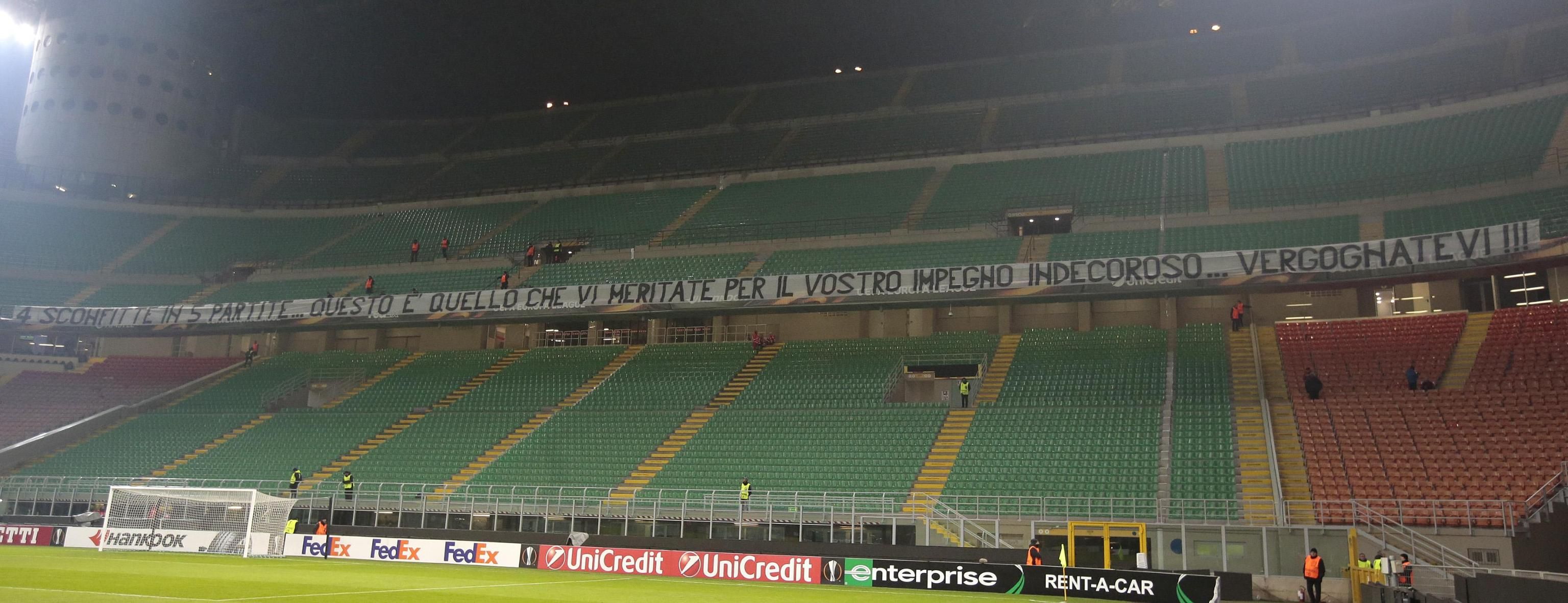 L'Inter chiuderà la fallimentare esperienza in Europa League senza il supporto della Curva Nord. Contro lo Sparta Praga, i tifosi nerazzurri rimarranno fuori dalla stadio di San Siro in segno di protesta per il cammino molto deludente della squadra sia nelle coppe che in campionato. Al loro posto al secondo anello verde uno striscione eloquente: "4 sconfitte in 5 partite... questo è quello che meritate per il vostro impegno indecoroso... vergognatevi!!!".