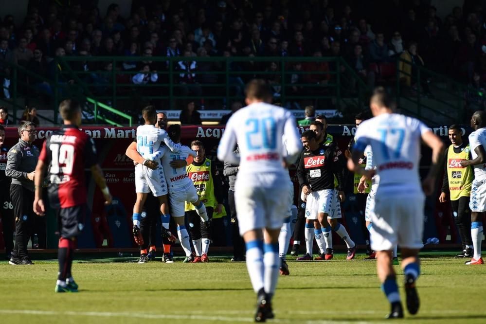Senza pietà. Il Napoli travolge il Cagliari al Sant'Elia con un pesantissimo 5-0 che proietta la squadra di Sarri al quarto posto al pari con la Lazio a 31 punti. Mattatore del match Mertens, autore di una tripletta. Il belga apre i giochi al 34', poi il raddoppio di Hamsik. Nella ripresa destro vincente di Zielinski e altri due gol di Mertens. Desolante la prestazione dei padroni di casa, che restano a metà classifica a quota 20.