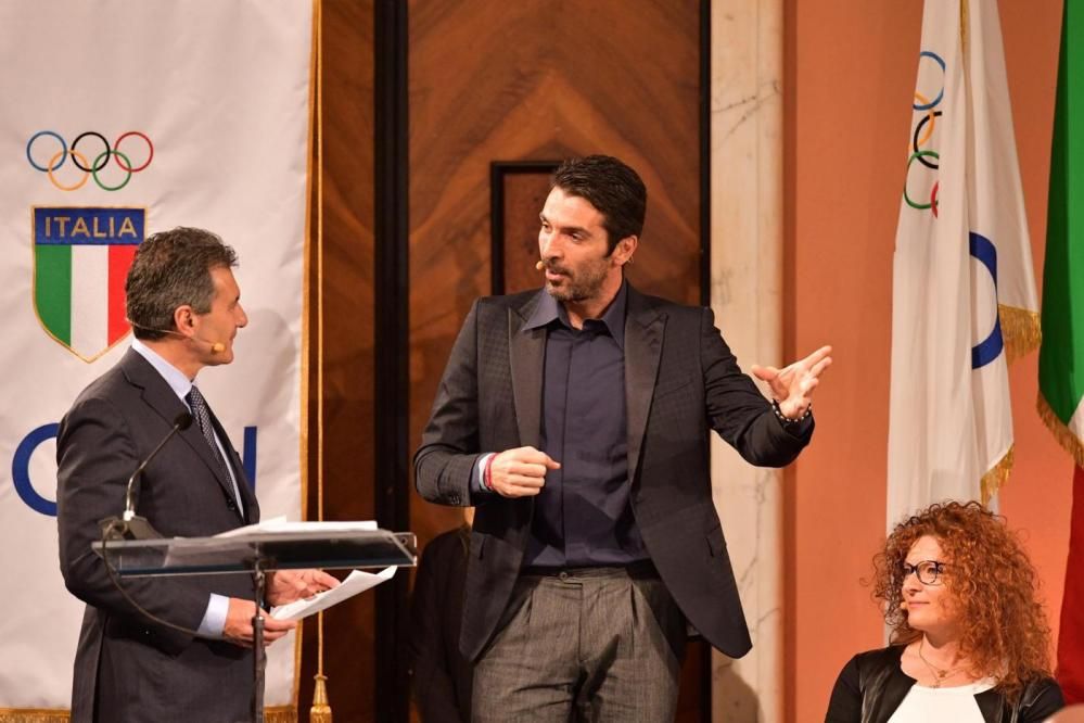 "Sono onorato di essere qua. Ci sono atleti di spessore mondiale che mi hanno fatto emozionare tanto, anche se loro non lo sanno": così il portiere della Juventus e della Nazionale di calcio, Gianluigi Buffon, sul palco del salone d'onore del coni per la cerimonia della consegna dei collari d'oro nell'insolita veste di aiuto presentatore. "Mi sento un po' a disagio - ha aggiunto - perché l'ambiente del calcio, un po' anche per colpa nostra, 'cozza' un po' con quello delle altre discipline".Sentiamo ancora addosso la ferita per il ritiro della candidatura" di Roma 2024 anche perché "il nostro mondo non la capirà mai". "Alla base c'è stato solo un pregiudizio, ma credo che ne siamo usciti con stile, lo hanno riconosciuto tutti, anche il Cio. Il futuro è dalla parte dello sport, in particolare quello italiano". Cosi' il presidente del Coni, Giovanni Malagò, durante la cerimonia di consegna dei Collari d'oro 2016, massima onorificenza dello sport italiano.