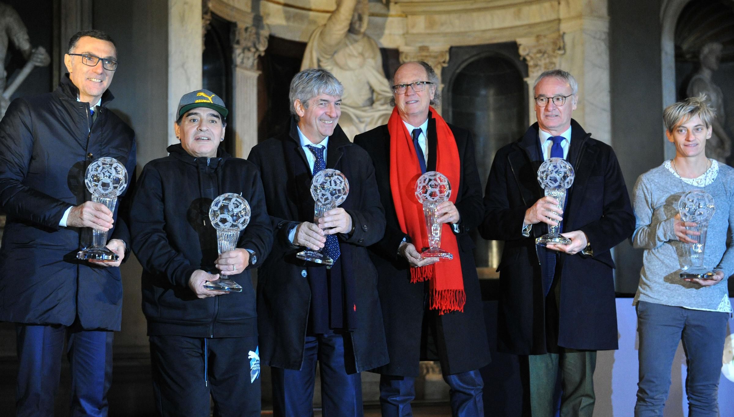 La 'Hall of Fame' del calcio italiano si arricchisce di tanti protagonisti. Non solo Maradona che ha ritirato un premio arrivato nel 2014. Nella categoria calciatore italiano entra la bandiera dell'Inter Giuseppe Bergomi, in quella degli stranieri un'altra bandiera quella della Roma Paulo Roberto Falcao. Ci sono anche Claudio Ranieri come allenatore, Silvio Berlusconi come grande dirigente italiano e Paolo Rossi inserito nella categoria veterani. Melania Gabbiadini viene premiata tra le donne. Ci sono anche i premi alla memoria a Nils Liedholm, Giulio Campanati e Cesare Maldini.