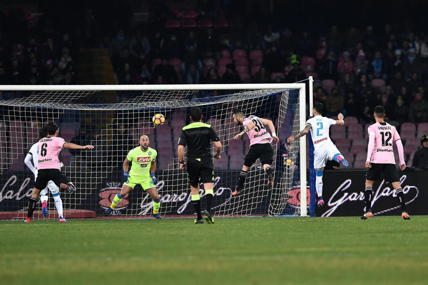 Il Napoli stecca nel posticipo della 22.ma giornata di Serie A. Al San Paolo la squadra di Sarri non va oltre l'1-1 col Palermo e fallisce l'aggancio alla Roma al secondo posto. Nestorovski sblocca la gara al 6', poi la traversa ferma Mertens. Nella ripresa Posavec blocca l'assalto azzurro, ma poi al 66' regala clamorosamente il gol del pari al Napoli lasciando passare la palla tra le gambe su un tiro di Mertens. Goldaniga espulso nel finale.