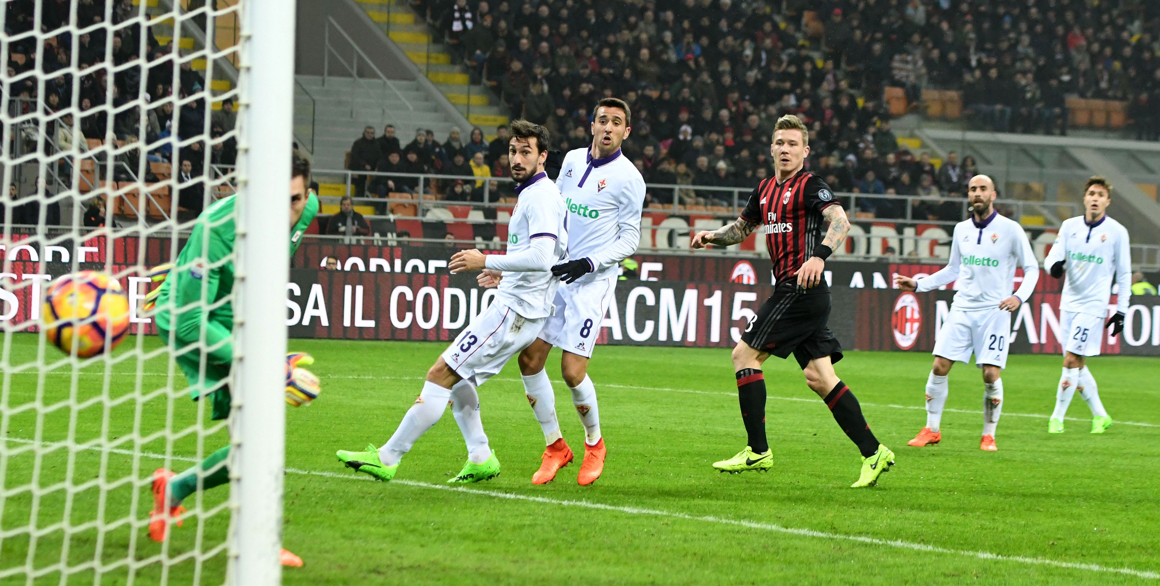 Vince e rimane attaccato al treno per l'Europa il Milan di Montella grazie al 2-1 sulla Fiorentina nel posticipo della 25.a giornata di Serie A. Accade tutto nel primo tempo coi rossoneri in vantaggio al 17' con un colpo di testa di Kucka. Immediato il pareggio di Kalinic con una zampata da pochi passi al 21', ma dieci minuti più tardi il primo gol in Italia di Deulofeu vale i tre punti. Prima dell'intervallo palo di Pasalic.
