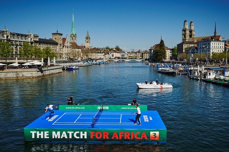 A margine dell'iniziativa benefica "Match for Africa", lunedì mattina Roger Federer e Andy Murray hanno palleggiato sull'insolito terreno, anzi imbarcazione da gioco, che galleggiava sulle acque della Limmat, fiume che attraversa Zurigo. Sulle rive del fiume zurighese si sono riversati tantissimi fan curiosi che hanno immortalato i due campioni di tennis.