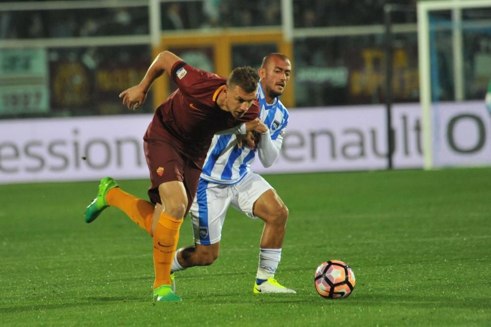 Nel posticipo della 33.ma giornata, la Roma travolge il Pescara e condanna gli abruzzesi alla matematica retrocessione in Serie B. All'Adriatico finisce 4-1 per la squadra di Spalletti, che sul finire del primo tempo vola sul 2-0 grazie a Strootman (44') e Nainggolan (45'), poi nella ripresa si scatena Salah con una doppietta (48' e 60'). Nel finale arriva l'inutile rete di Benali (83'). I giallorossi salgono a +4 sul Napoli.