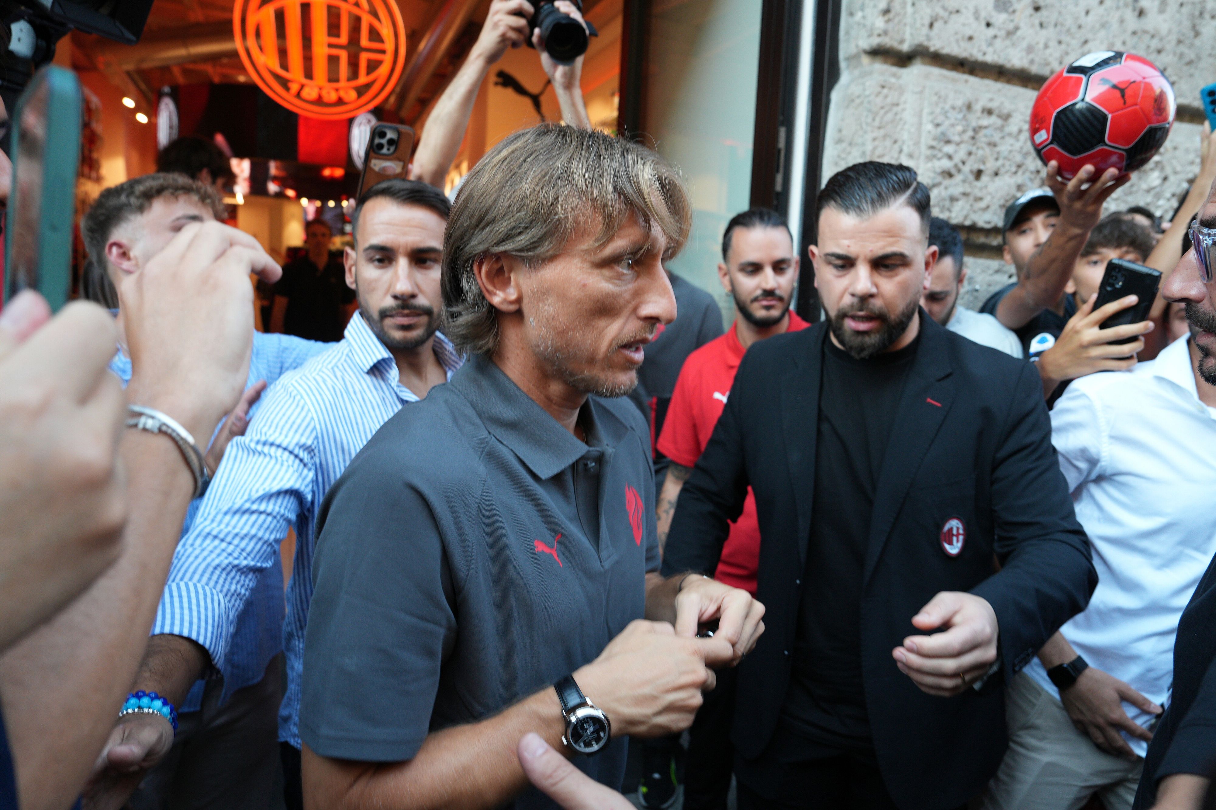 C'è la soddisfazione per l'arrivo di un campione ma continuano le proteste contro la società rossonera tanto che sono stati intonati cori anche per Paolo Maldini e contro Gerry Cardinale, invitato come ormai è prassi a vendere il club.