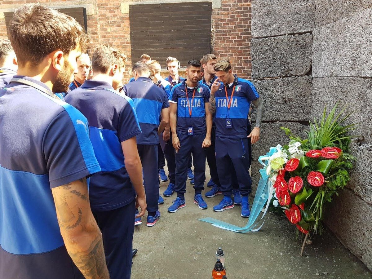Dopo la vittoria all'esordio contro la Danimarca, l'Italia Under 21 di Gigi Di Biagio si appresta ad affrontare la Repubblica Ceca nel secondo match dell'Europeo in corso in Polonia. Prima della sfida, però, l'intera delegazione degli Azzurrini ha avuto il modo di visitare il campo di concentramento di Auschwitz: "Camminare tra blocchi e camere a gas. Immaginare sofferenze e atrocità. Non avere il coraggio di dire nulla" ha commentato capitan Benassi.