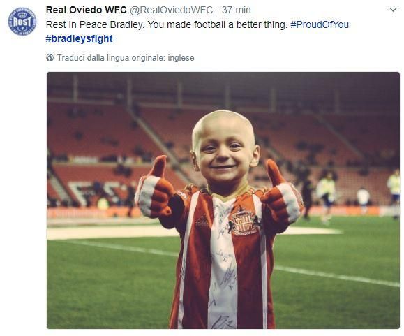 La drammatica morte di Bradley Lowery, il ragazzino che aveva commosso il calcio inglese, diventando una sorta di mascotte sia del Sunderland che della nazionale inglese, non ha lasciato indifferente il mondo del calcio d'Oltremanica e di tutto il mondo. Diversi e commossi i messaggi di ricordo affettuoso su Twitter, dal Chelsea campione al Sunderland squadra del cuore del piccolo Bradley, sconfitto da un neuroblastoma.