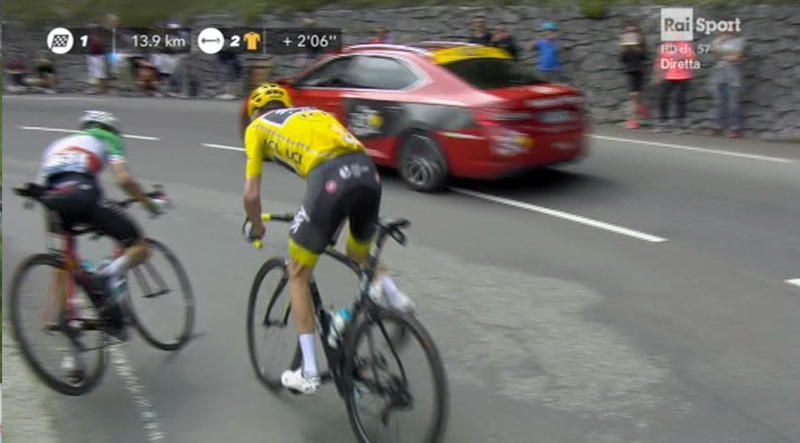 Piccolo imprevisto per Fabio Aru e Chris Froome nella dodicesima tappa del Tour de France. Durante la discesa Del Col De Bales i due rivali sono finiti lunghi in una curva. Colpa di Michal Kwiatkowski che li ha ingannati finendo nel prato tra due camper. Nessuna conseguenza fisica, ma solo un grande spavento.