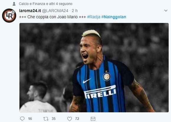 Radja Nainggolan ha firmato il rinnovo fino al 2021 con la Roma e lo ha fatto su un tavolo con una tovaglia nerazzurra. Chiaro il messaggio all'Inter, che ha a lungo corteggiato il centrocampista belga. La foto ha fatto il giro del web e ha scatenato l'ironia dei tifosi giallorossi.
