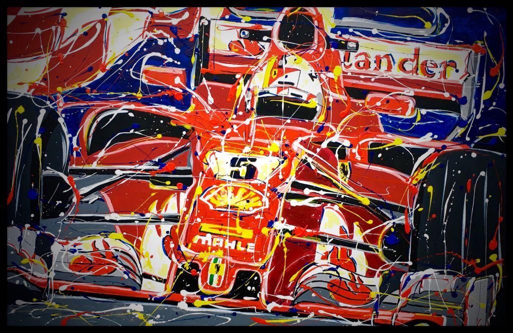 Tutto pronto a Monza per il GP di Formula 1. In città saranno esposti anche i quadri di KNULP che da sempre ama i motori. L'ultima sua opera ritrae Sebastian Vettel sulla Ferrari in azione nelle vie del Principato di Monaco durante l'ultimo GP vinto. Una mostra che può essere di buon auspicio per il Cavallino rampante in vista della gara di domenica sul circuito brianzolo. Fabrizio de Nicolò, pittore torinese, riunisce nelle sue opere la passione per i motori, la POP ART e l'esperienza maturata come fotografo professionista. Rumore e colore sono i tratti inconfondibili della gran parte della sua produzione improntata e dedicata agli sport motoristici. Il taglio e l'inquadratura delle immagini ne tradiscono la provenienza dall'ambiente della fotografia. I colori accesi l'utilizzo del dripping portano lo spettatore e respirare atmosfere POP e la frenesia e l'adrenalina di un circuito automobilistico. Outsider per scelta dell'ambiente istituzionale del mercato dell'arte le sue opere sono presenti e riconoscibilissime in location orbitanti il mondo dei motori in Europa ed oltreocano. Contatto FB: Fabrizio Knulp de Nicolò. http://www.knulpart.it/