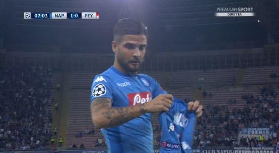Esultanza e pensiero per Milik dopo il gol al Feyenoord, ma la maglia... è quella di Zielinski. Perplessità, risatge e poi è lo stesso Zielinski che dopo aver allungato in un primo momento quella sbagliata, rimedia e passa a Insigne la maglia giusta!