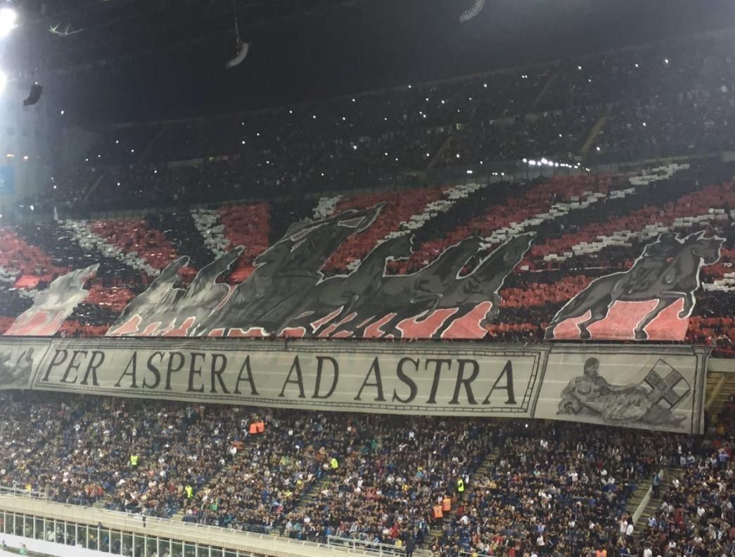 Il derby infiamma San Siro e prima del match spuntano le coreografie dei tifosi di Inter e Milan. I nerazzurri incitano la squadra a segnare ("Fai gol, fallo per la Nord"), citazione latina invece per i rossoneri, che citano il famoso "Per aspera ad astra" di Cicerone ("Attraverso le asperità sino alle stelle").