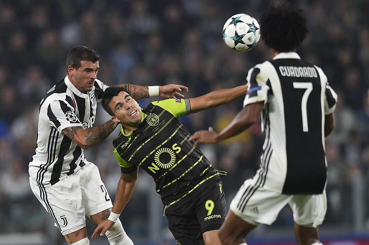 Tre punti preziosi per la Juve nella terza gara di Champions League. Allo Stadium la squadra di Allegri batte 2-1 lo Sporting Lisbona e scavalca in classifica i portoghesi. Al 12' gli uomini di Jorge Jesus passano in vantaggio grazie a un autogol di Alex Sandro, poi Pjanic pareggia i conti al 29' con una perla su punizione. Nella ripresa Mandzukic firma la rete che decide il match all'84' su perfetto assist di Douglas Costa.