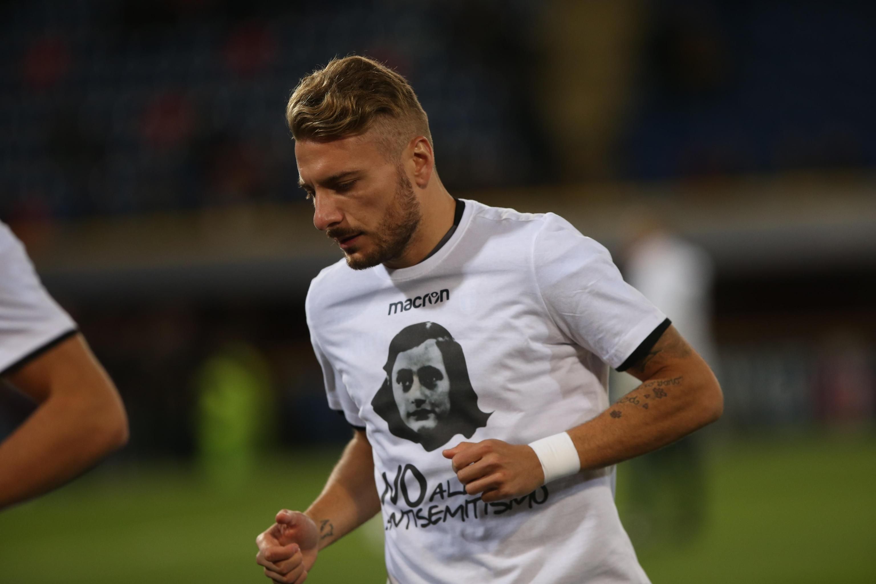 I giocatori della Lazio sono entrati in campo a Bologna con una maglia raffigurante Anna Frank per effettuare il riscaldamento prima della partita contro i rossoblù allo stadio Dall'Ara. Un segnale forte dopo le polemiche scatenate dall'atto antisemita compiuto dai tifosi biancocelesti domenica allo stadio Olimpico in Curva Sud.