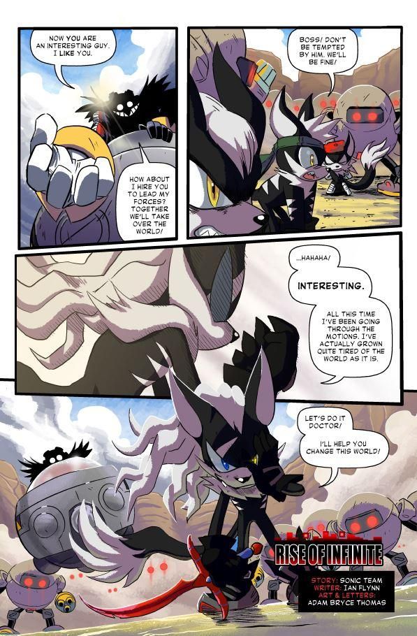 E' stato pubblicato anche il quarto e ultimo capitolo della serie a fumetti digitale Sonic Forces, sceneggiata da Ian Flynn. Il titolo "Rise of Infinite”, racconta la storia originale di Infinite e di come è diventato il complice maligno di Eggman, fornendo la perfetta metamorfosi del gioco. Dai una occhiata qui al capitolo completo di "Rise of Infinite".
