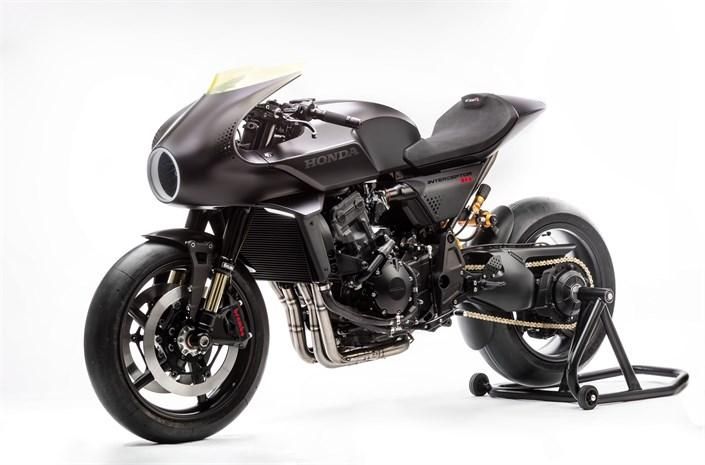 Si chiama CB4 ‘Interceptor’ ed è il risultato della continua ricerca sul tema ‘Neo Sports Cafè’, il cui debutto risale proprio alla CB4 del 2015, la conceptbike da cui sono scaturite le linee neoretrò e le performance all’avanguardia delle nuove CB1000R, CB300R e CB125R. Prendendo spunto da questo innovativo linguaggio di design, la nuova conceptbike Honda dà vita all’evocativo tema ‘Sport Endurance’, creando una nuova prospettiva nel mondo delle café racer, alla base di tutta la serie. Disegnata da Valerio Aiello, la CB4 Interceptor è una scultura “total black” che combina eleganza e sportività, ma lascia spazio per una futuristica tecnologia integrata nelle sinuose linee di design. Sul frontale è infatti inserita una turbina eolica che, generando energia pulita attraverso l’inerzia della moto, alimenta uno schermo ‘touch screen’ integrato nel serbatoio, sempre connesso on line, per seguire la strada attraverso mappe digitali, effettuare chiamate d’emergenza o semplicemente collegare i propri dispositivi, aumentando così la sicurezza passiva di guida della moto.