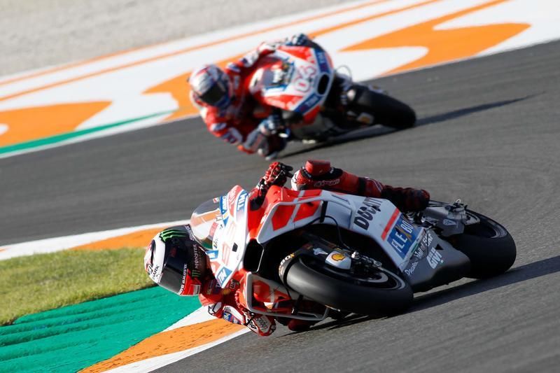 Scatto di Jorge Lorenzo nelle libere 2 nel GP di Valencia della MotoGP: ottimo 1:30.640 in sella alla sua Ducati. Lo spagnolo ha preceduto Pedrosa (Honda) e il compagno Dovizioso che è in lotta per il Mondiale e si è fermato a tre decimi dalla vetta. Quinta posizione per il leader del campionato Marquez che, però, negli ultimi secondi del turno è scivolato. Continuano le difficoltà per Rossi, nono e fuori dalla top ten dei tempi combinati.