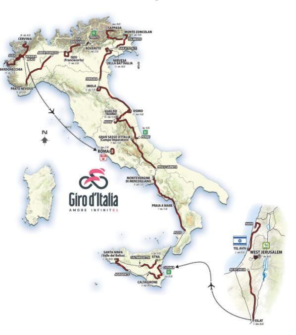 Altri sport 1 di 5 2 di 5 3 di 5 4 di 5 5 di 5 © twitter © twitter © twitter © twitter Giro 2018: ecco il percorso 1 di 5 2 di 5 3 di 5 4 di 5 5 di 5 Avvia slideshow © twitter © twitter © twitter © twitter Giro 2018: ecco il percorso E' nato a Milano il Giro 2018. Ecco tutte le tappe della Corsa Rosa. Si parte il 4 maggio con una crono a Gerusalemme, la chiusura il 27 nella capitale 29 nov 2017 - 18:19 5 foto giro 2018 tappe percorso Ultimi video Brivido Olimpiade: l'emozionante passaggio della fiamma tra Tamberi e Polonara La partenza della fiaccola olimpica con Paltrinieri La torcia al Quirinale Malagò: "La torcia per l'Italia è uno spot per il Paese" Mattarella: "L'Olimpiade parli a tutti con forza" Mattarella: "L'Italia ha chiesto che la tregua olimpica sia rinnovata" L'accensione della torcia olimpica al Quirinale La fiamma olimpica è arrivata in Italia Milano-Cortina, Sala: "Per Santa Giulia tutto a posto, superati gli scogli delle ultime settimane" L'ultimo saluto a Pietrangeli: la camera ardente al Foro Italico Malagò: "Pietrangeli un fenomeno, ma scanzonato e divertente" Binaghi: "Pietrangeli ci ha reso orgogliosi di essere italiani" Volandri: "Pietrangeli è quello che ci ha insegnato ad amare la Davis" Filippo Pietrangeli: "Sinner? Non mi fate questa domanda, sono cose molto private" Bruno Giordano: "Pietrangeli ha fatto sognare i tifosi italiani, è stato un numero uno incredibile" I più visti di Ciclismo Giro d'Italia 2026: si parte dalla Bulgaria, gran finale in Friuli Tirreno-Adriatico: Roglic vince a Tortoreto, il tedesco Kamna nuovo leader Roglic fa tripletta alla Tirreno-Adriatico e ipoteca la vittoria finale de Kleijn sorprende tutti in volata: sua la Milano-Torino Ganna domina la cronometro d'apertura, distacchi-monstre per tutti Philipsen, che volata autoritaria. Ganna sempre azzurro Strade Bianche: trionfo Pidcock, battuti Madouas e Benoot Laporte fa sua la Gand-Wevelgem. Ganna si ritira dopo una caduta Laporte fa sua la Gand-Wevelgem. Ganna si ritira dopo una caduta