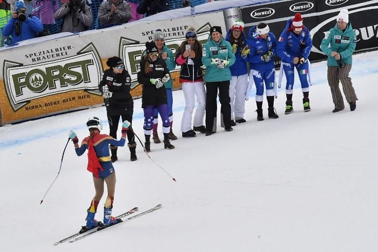 Pettorale 31 e con una mantellina rossa da Wonder woman, la statunitense Julia Mancuso ha dato a 33 anni l'addio alle gare nella discesa di Cortina d'Ampezzo. Per lei - californiana di origini siciliane - è stata la 399 gara di una carriera che l'ha vista vincere sette volte e soprattutto conquistare l'oro olimpico in gigante a Torino 2006. Per molti anni - amiche ma anche rivali in gara - Julia e Lindsey Vonn sono state il simbolo vincente dello sci Usa. All'arrivo l'americana è stata festeggiata dalle altre atlete