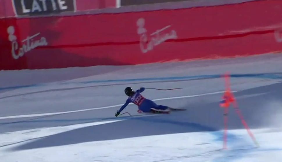 Dopo la gioia, grande spavento per Sofia Goggia nella seconda discesa di Coppa del mondo di sci a Cortina. L'azzurra è uscita di pista dopo 25": è volata a 130 km l'ora su un salto dopo uno 'schuss' ed è rimasta in piedi miracolosamente saltando però una porta.