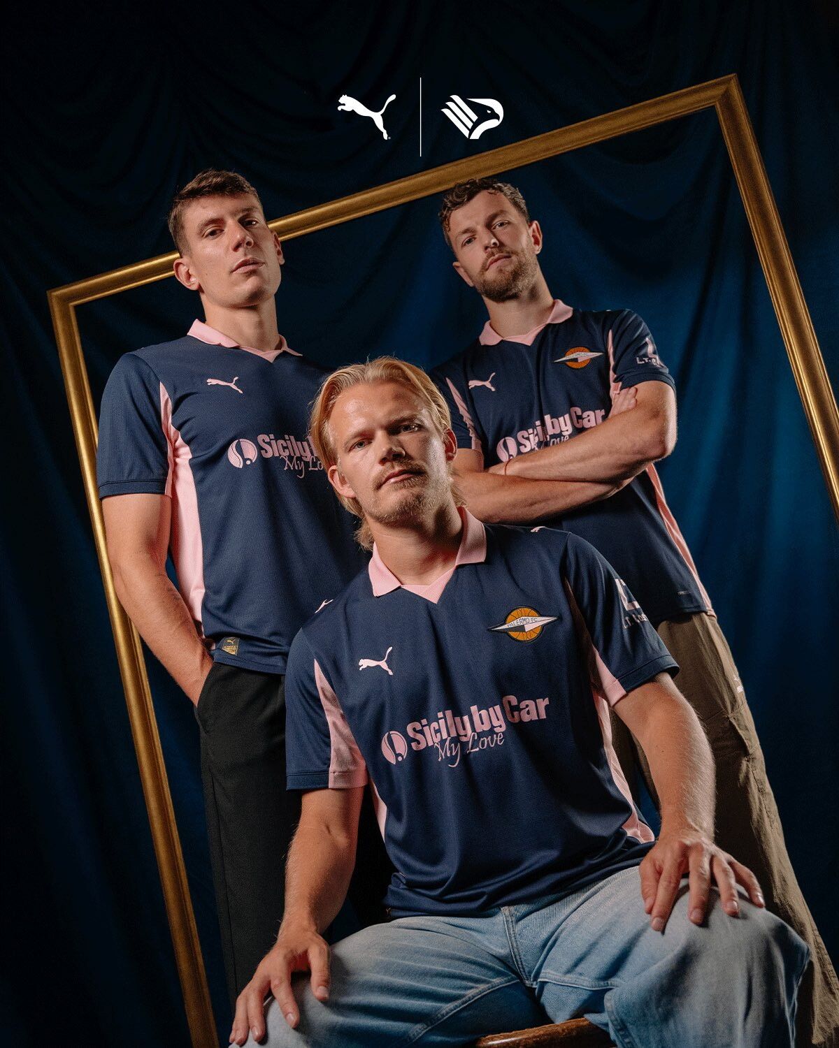 PUMA e Palermo FC, in occasione delle celebrazioni per il 125° anniversario dalla fondazione del Club, hanno presentato il nuovo Away kit per la stagione 2025–26 che sarà indossato da tutte le formazioni rosanero: un omaggio elegante e identitario alle radici britanniche del Club, con un design che rievoca lo stile delle storiche divise d’inizio Novecento. Un vero omaggio all’heritage del Palermo FC, dal sapore dichiaratamente vintage, che celebra l’anima cosmopolita e l’audacia culturale che da sempre caratterizzano il capoluogo siciliano. La colorway dominante del nuovo Away kit è il Deep Navy, tonalità molto diffusa nelle uniformi “royal” delle squadre inglesi nei primi decenni del secolo scorso, e impreziosito da dettagli come il raffinato colletto a polo e le finiture con cucitura doppia nella colorway Team Light Pink per un effetto timeless. Elemento distintivo assoluto è il ritorno in grande stile dello storico logo futurista del Club, che campeggia per la prima volta sulla maglia da gioco. Si tratta del celebre rombo con pallone old style al centro, disegnato nel 1929 dal pittore Pippo Rizzo, esponente del Futurismo siciliano e originario di Corleone. In quei tempi, un simbolo di modernità e avanguardia adottato dal Palermo in alternativa ai tradizionali stemmi araldici, ritenuti all’epoca troppo convenzionali. Quando venne concepito, negli anni Trenta, i loghi non venivano ancora applicati sulle divise da gara.