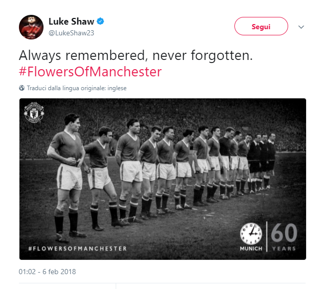 6 febbraio 1958: sono trascorsi esattamente 60 anni dal disastro aereo di Monaco che spezzò il sogno dei "Busby Babes". Quel giorno il volo della British con a bordo la squadra del Manchester United si schiantò al terzo tentativo di decollo provocando la morte di 23 persone tra cui 8 giocatori, 3 membri dello staff, 8 giornalisti e 4 membri dell'equipaggio. Tra i sopravvissuti la futura leggenda del football britannico Bobby Charlton.