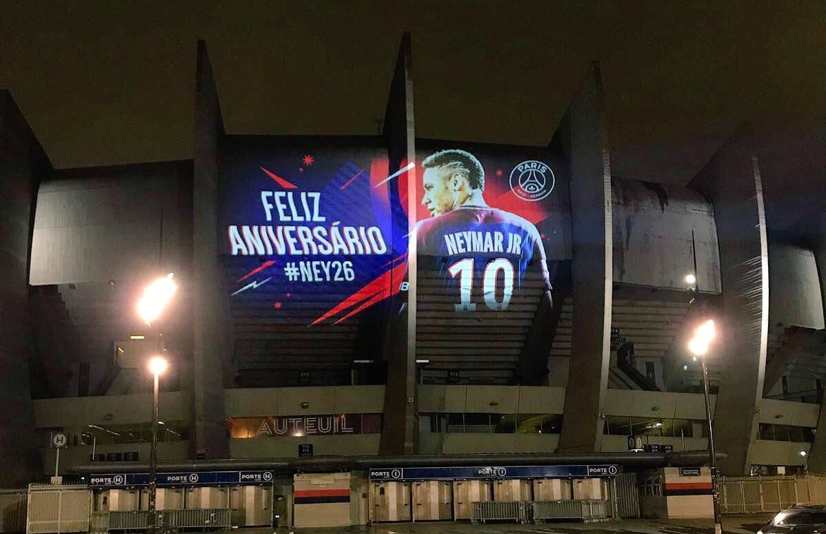 Per festeggiare il 26° compleanno di Neymar, il Psg haproiettato il volto del brasiliano sui luoghi più emblematicidella capitale francese, a cominciare dagli Champs-Elysees.