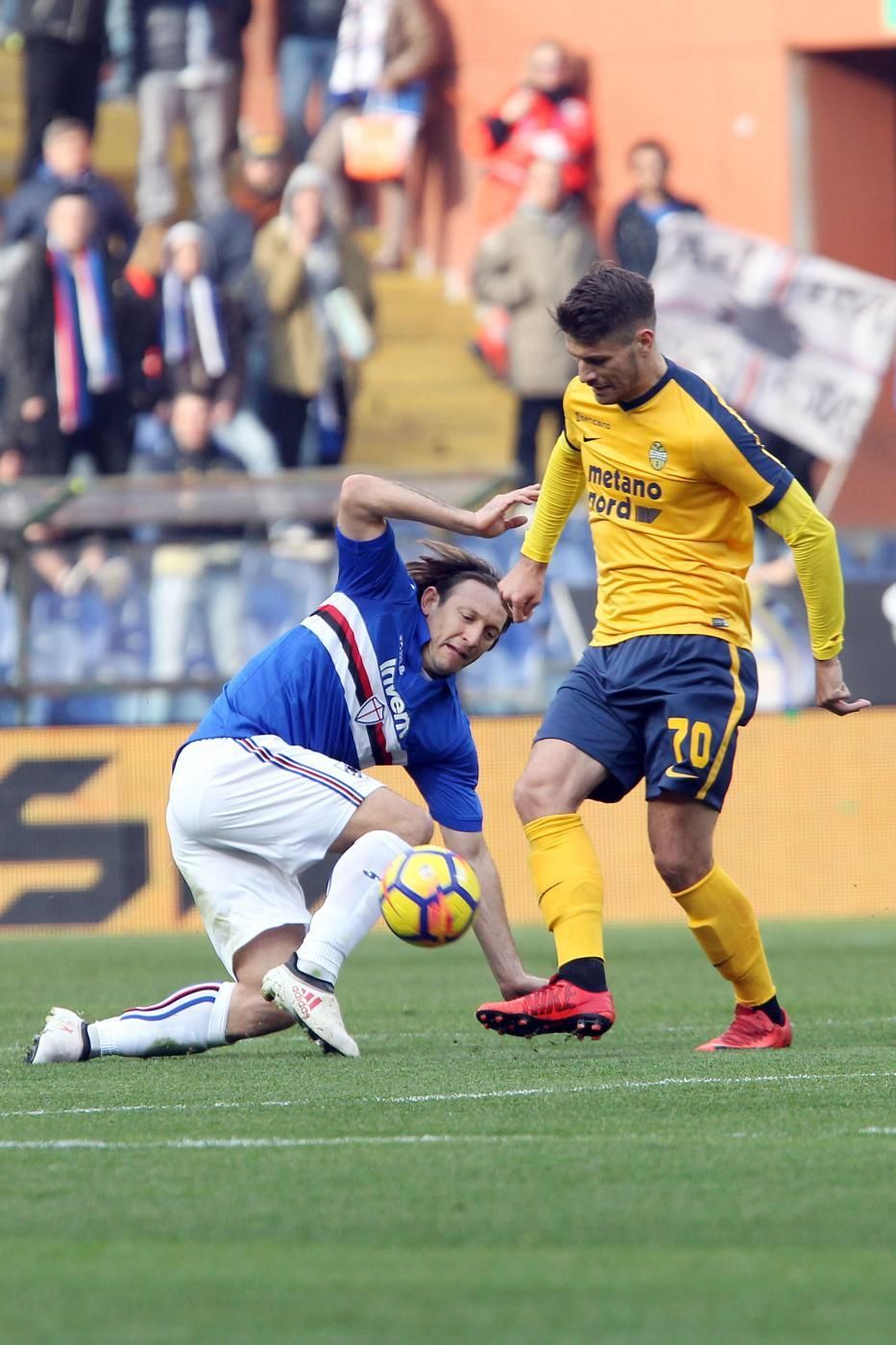 Sono tre punti preziosi per la Sampdoria, che supera il Verona per 2-0 e resta al sesto posto a +3 sul Milan e a +4 sull'Atalanta. A Marassi, la squadra di Giampaolo sblocca la partita al 50' grazie al colpo di testa di Barreto (assist di Caprari) e poi trova il bis a cinque minuti dal termine, quando Kownacki si procura un calcio di rigore: dal dischetto si presenta Quagliarella, che spiazza Nicolas per il 2-0.
