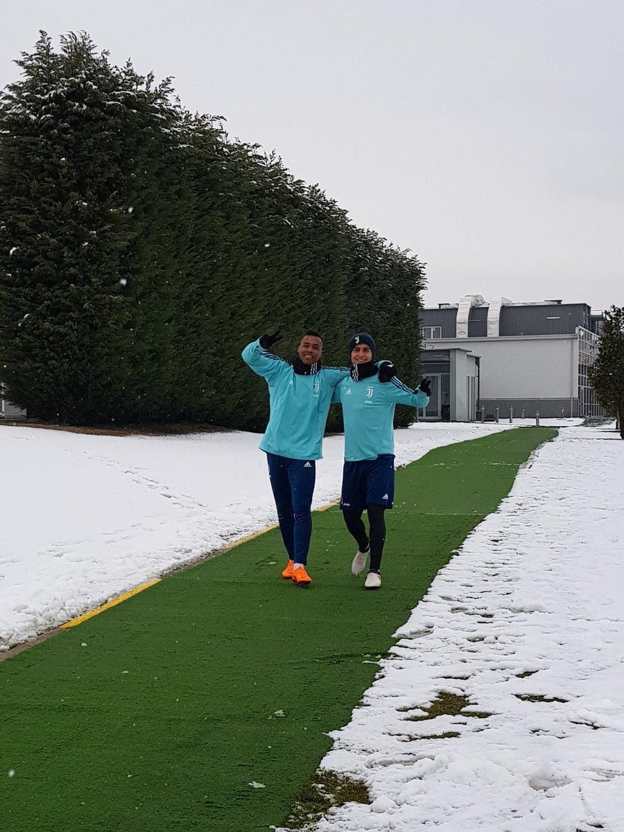 Allenamento sotto la neve per la Juve, che venerdì ha lavorato a Vinovo in vista della partita contro l'Atalanta in programma domenica alle 18. I bianconeri - tra scherzi e palle di neve - ne hanno approfittato per divertirsi un po' prima iniziare a fare sul serio agli ordini di mister Allegri.