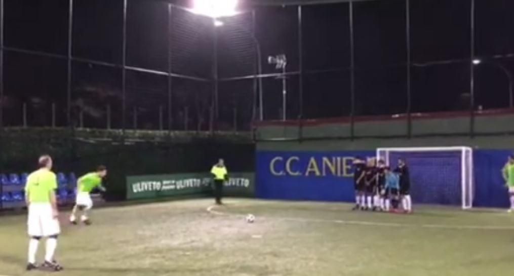 Francesco Totti e il cucchiaio: un amore che non terminerà mai. Ecco l'ex capitano della Roma sfoderare il miglior colpo del suo repertorio durante un torneo di calcetto al Circolo Aniene. La punizione si trasforma in gol con un pallonetto tanto delicato quanto preciso.