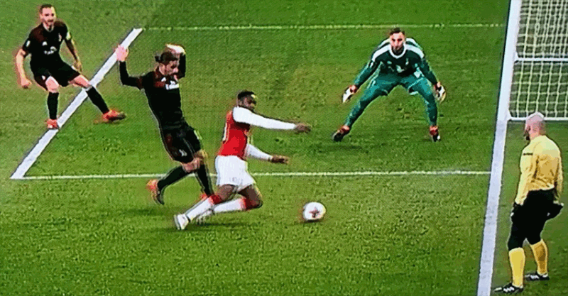 Al minuto 39 di Arsenal-Milan e con i rossoneri da poco passati in vantaggio, Welbeck si è procurato un calcio di rigore con un tuffo in area di rigore che ha ingannato l'assistente di porta. Penalty inesistente e gol del pareggio