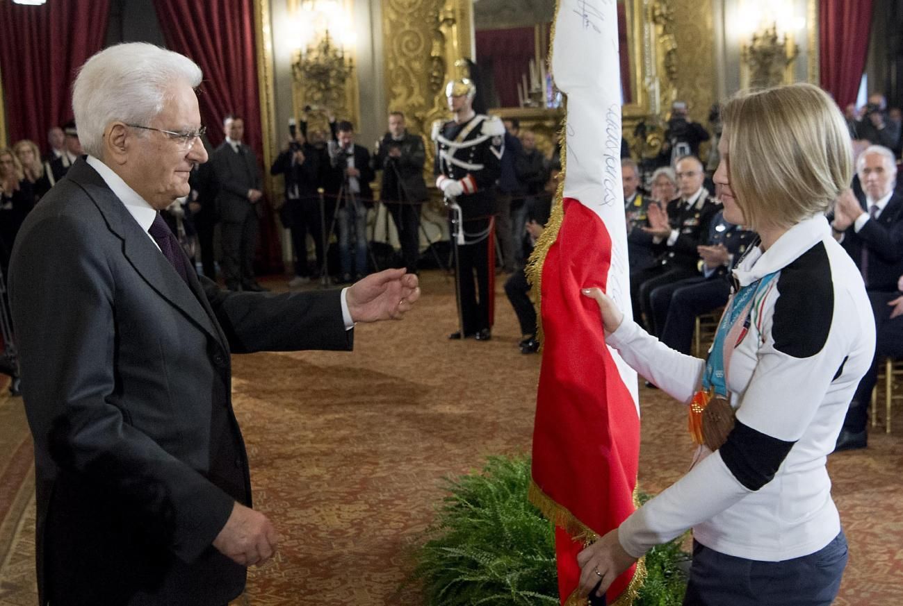 Dopo le 10 medaglie conquistate alle Olimpiadi e le 5 medaglie delle Paralimpiadi, martedì Arianna Fontana - portabandiera azzurra ai giochi invernali di PyeongChang - e l'alfiere della squadra paralimpica Giacomo Bertagnolli - accompagnato da Fabrizio Casal - hanno riconsegnato la bandiera tricolore, con le firme degli atleti, al Presidente della Repubblica Sergio Mattarella nel corso della cerimonia al Quirinale.