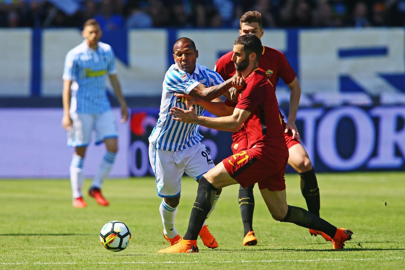 Missione compiuta per la Roma. Nell'anticipo della 34.ma giornata di Serie A, al Mazza la squadra di Di Francesco batte 3-0 la Spal e difende il terzo posto in classifica, volando a quota 67 punti. I giallorossi passano in vantaggio al 33' grazie a un autogol di Vicari, poi Nainggolan raddoppia i conti al 51' e Schick firma il tris al 60' chiudendo il match. A 29 punti la Spal resta a tiro del Crotone in zona salvezza.