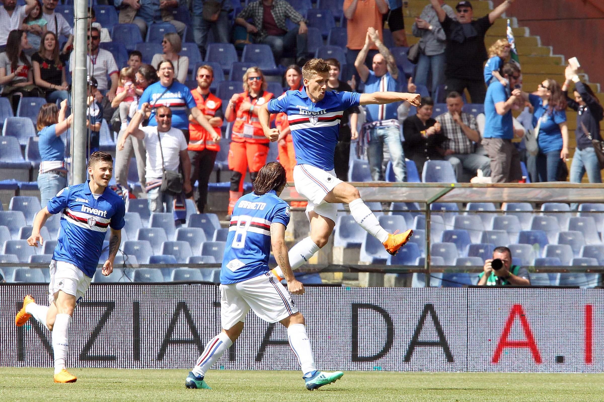 La Sampdoria batte 4-1 il Cagliari e non molla la corsa a un piazzamento europeo. Al Ferraris blucerchiati travolgenti nel primo tempo: vantaggio di Praet al 7' e raddoppio di Quagliarella (che poi sbaglia un rigore) al 26'. Al 49' Kownacki fa tris poi a inizio ripresa Pavoletti accorcia per i sardi. Ramirez all'87' chiude i conti. Giampaolo resta a -4 dal sesto posto dell'Atalanta, Lopez ha soli due punti di margine dal terz'ultimo posto.