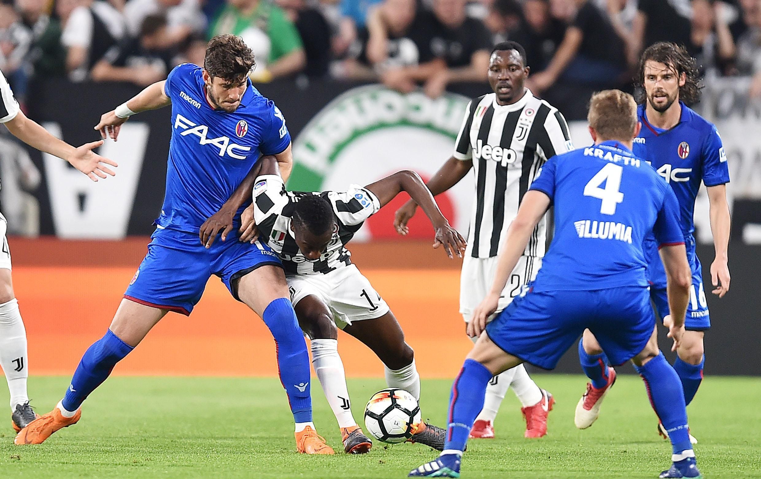 Nel secondo anticipo della 37a giornata di Serie A la Juventus batte 3-1 il Bologna in rimonta e può vincere il 7° scudetto di fila se il Torino batterà il Napoli domenica. Un rigore di Verdi al 30' gela lo Stadium. Allegri toglie Matuidi e inserisce Douglas Costa che ribalta il match. I felsinei si fanno male da soli al 52' (autorete di De Maio), poi il brasiliano serve due assist al bacio a Khedira (male Mirante in uscita al 63') e Dybala (69').