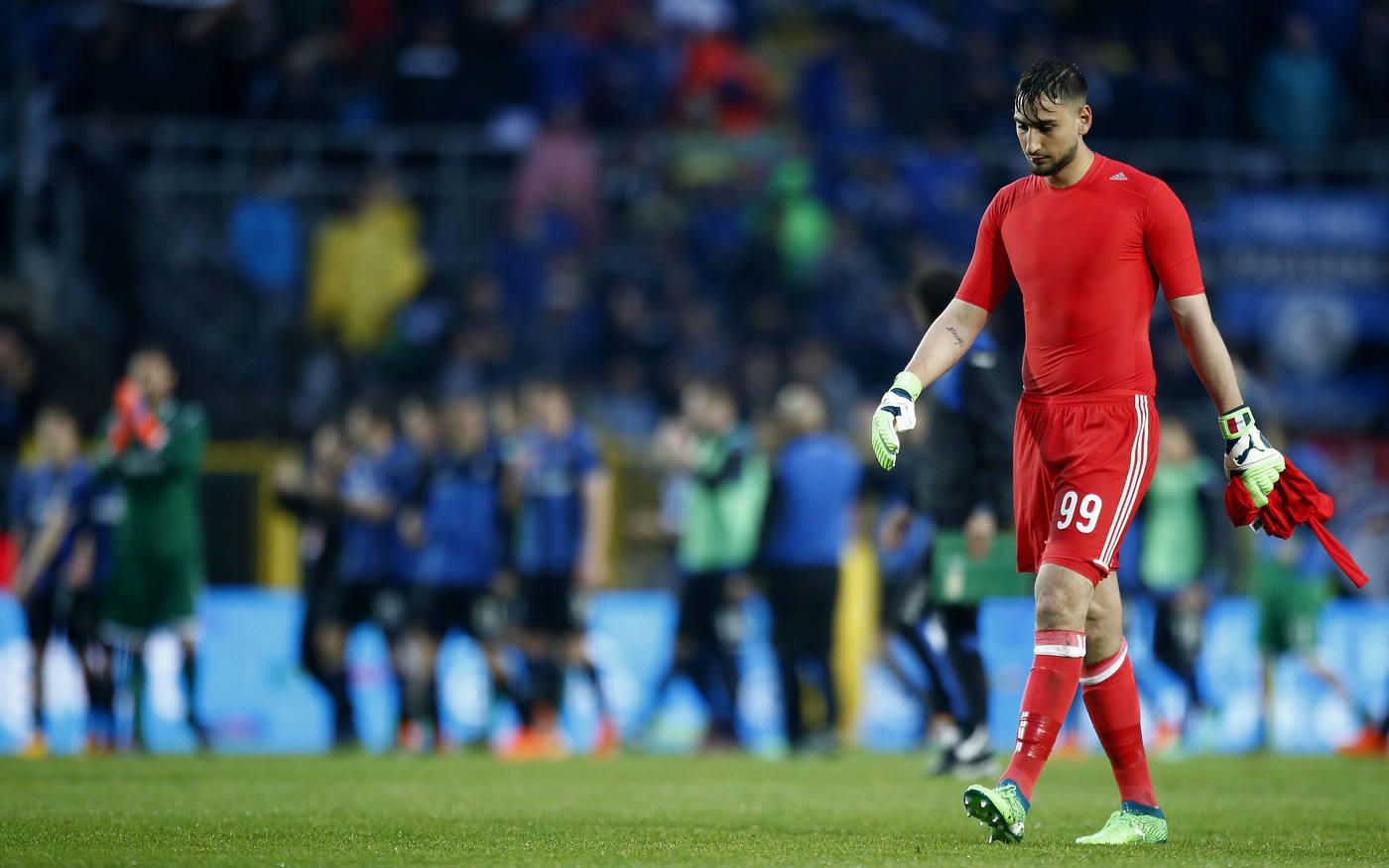 Cento metri a percorrere tutto il campo e poi giù nel tunnel degli spogliatoi con il volto deluso e tanto rammarico: chissà cosa ha pensato in quegli attimi Gigio Donnarumma. Nelle manoni aveva la sua numero 99 arancione, quella che pochi istanti prima la Curva Sud aveva rifiutato. A Bergamo è arrivato un altro strappo con i tifosi, quello di cui proprio non aveva bisogno. Un momento nero dopo gli errori nella finale di Coppa Italia e l'incertezza sul gol di Masiello. Lui ci ha messo la faccia e a 19 anni non è facile, ma gli ultras non hanno gradito.Sotto lo spicchio dei tifosi rossoneri, il portiere è stato respinto: "No, la tua maglia non la vogliamo", si è sentito dire. Cosa che non è successa ad altri tre simboli, Bonucci, Romagnoli e Abate. Dopo qualche attimo di incredulità, Gigio si è girato e ha imboccato la via degli spogliatoi. Una camminata lenta dove ad attenderlo c'era il fratello Antonio. Un gigante di un metro e 96 ferito nell'animo, quasi abbattuto. Gli errori capitano, ma nel suo caso c'è di più. Ci sono quei sei milioni di euro di ingaggio che pesano come un macigno anche se meritati. C'è un procuratore scomodo come Raiola. Ci sono voci di mercato sempre più frequenti. Pressioni non facili da supportare per un ragazzo della sua età cresciuto troppo in fretta.Questa volta c'è come l'impressione che ricucire lo strappo sarà molto difficile. E forse non basterà una bella parata a San Siro per mettersi alle spalle tutto questo. Gattuso lo ha difeso e Mirabelli ha cercato di blindarlo, ma il futuro in rossonero non è mai stato così incerto. Il prezzo fissato dal Milan è sempre di 50-60 milioni di euro, ma bisogna capire chi sarà disposto a investire così tanto. Sarà una lunga estate: prima la maturità e poi si capirà il futuro di Gigio.