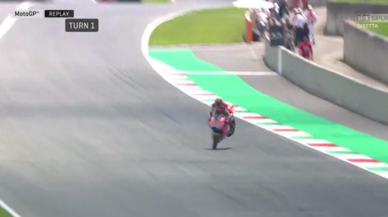 Paura per Michele Pirro durante la seconda sessione di libere del GP d'Italia. Il pilota della Ducati, al Mugello come wild card, è finito a terra in fondo alla staccata della curva 1 (la San Donato), vittima di un terribile high-side e sbalzato in aria dalla sua Desmosedici. È rimasto a terra inerme per qualche minuto ed è stato portato sull'ambulanza dai medici della pista, ma fortunatamente è arrivato presto l'annuncio che il pilota è cosciente.