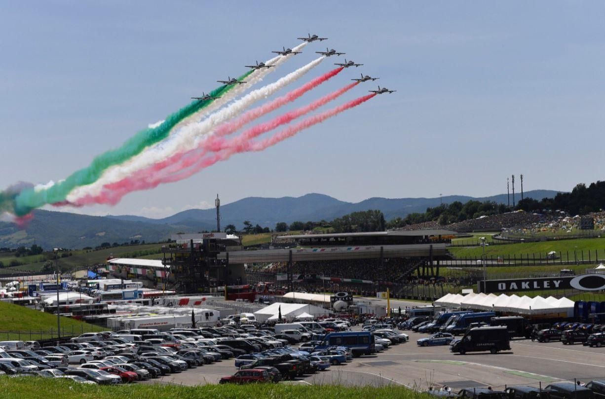 Grande spettacolo nel cielo sopra Mugello dove, prima del via della MotoGp, sono passate le Frecce Tricolori. I 90mila spettatori e tutti i piloti in griglia non hanno potuto fare altro che alzare lo sguardo per ammirare la Pattuglia Acrobatica Nazionale che colorava il cielo dell'autodromo di bianco, rosso e verde.