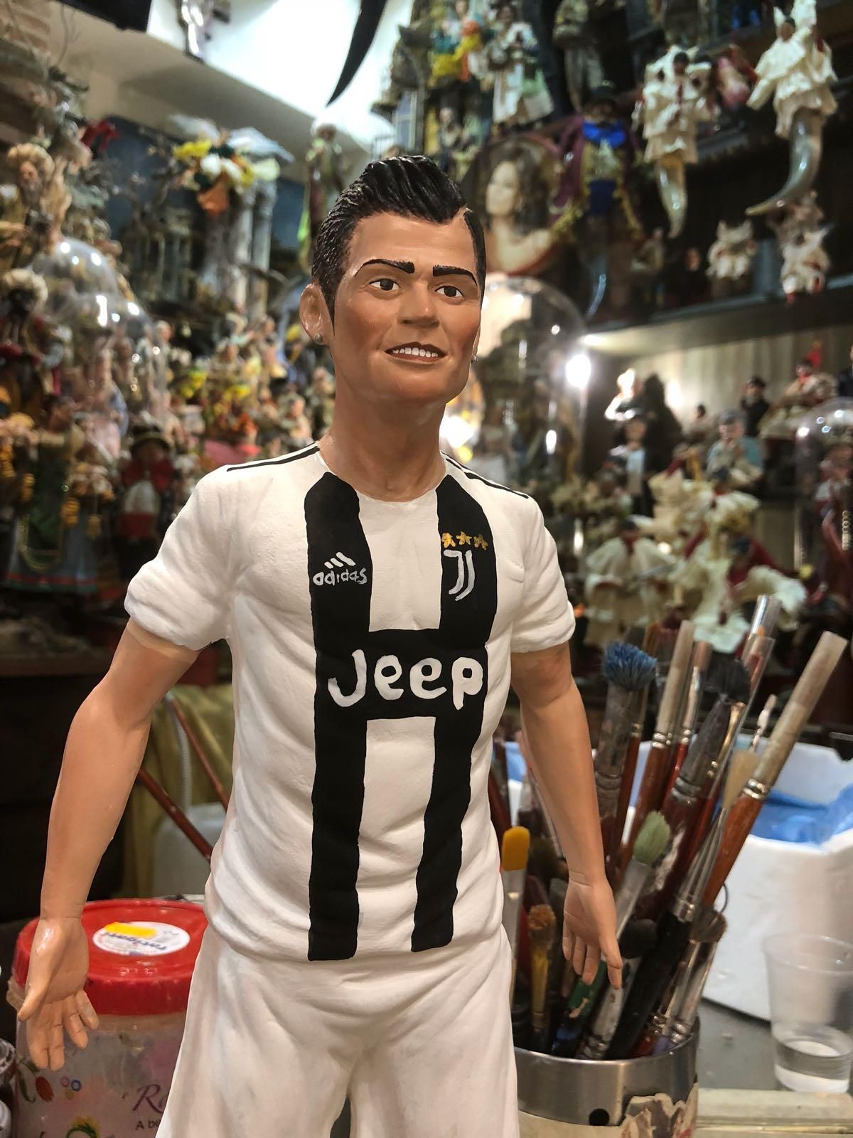 Nella sua classica posa, con i capelli perfettamente in ordine e un sorriso appena abbozzato. Ma con indosso la maglia della Juventus e non quella del Real Madrid. Cristiano Ronaldo non è ancora un calciatore bianconero ma a Napoli, come spesso accade, hanno precorso i tempi. E così CR7 ha già fatto il suo ingresso ufficiale nel... presepe, in questo caso quello della bottega di Genny Di Virgilio a San Gregorio Armeno.