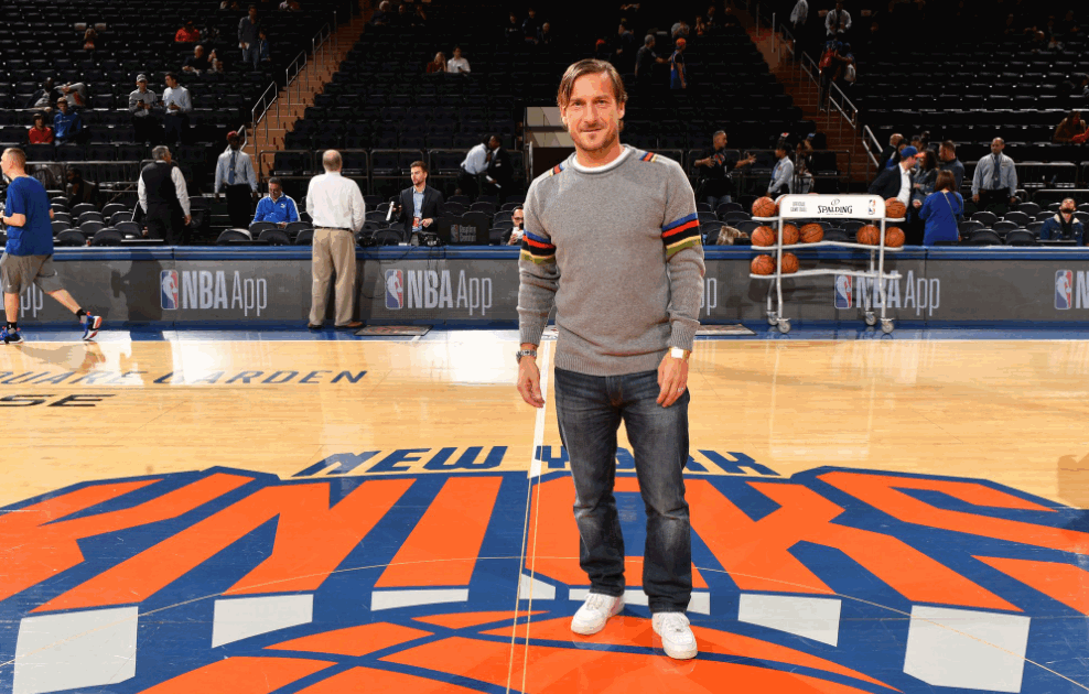 Francesco Totti re a New York. Anche il Madison Square Garden ha reso omaggio all'ex capitano della Roma, in tribuna per assistere alla gara di Nba fra i New York Knicks e gli Indiana Pacers. Totti, in vacanza con la famiglia nella Grande Mela, al termine della partita ha posato per alcune foto al centro del campo poi pubblicate sui profili social dell'Nba. "Speriamo ti sia divertito al Madison Square Garden".