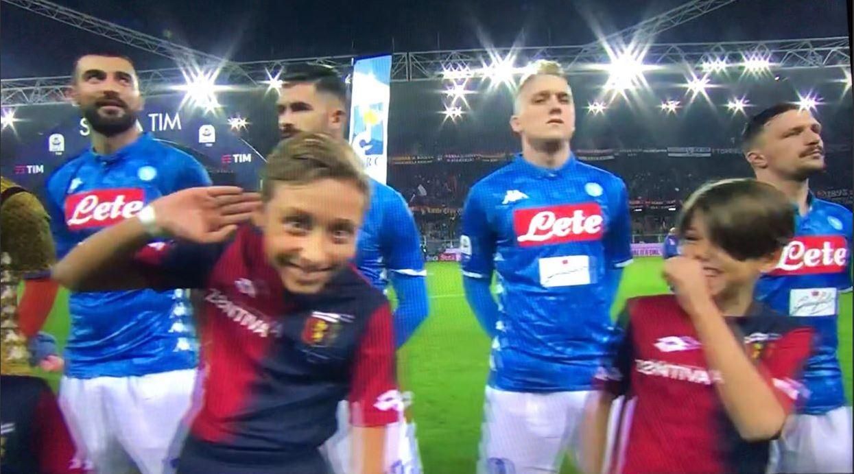 Una mano all'orecchio dopo la vittoria del suo Manchester United contro la Juventus all'Allianz Stadium. Il gesto provocatorio nei confronti dei tifosi bianconeri compiuto da José Mourinho a Torino ha fatto il giro del mondo ed è arrivato anche a Genova, dove prime del fischio d'inizio di Genoa-Napoli uno dei ragazzini che accompagnano i giocatori in campo ha imitato lo Special One.