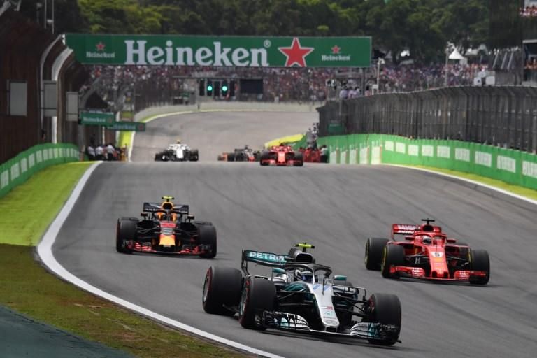 Lewis Hamilton vince il GP del Brasile e centra il decimo successo della sua già trionfale stagione. Il campione del mondo ha tagliato il traguardo per primo approfittando della "eliminazione" di Verstappen, buttato fuori pista dal doppiato Ocon quando era al comando e poi solo 2°. Gara decisamente anonima per le Ferrari, con Raikkonen sul podio ma Vettel appena 6°. La Mercedes è aritmeticamente campione dei costruttori.