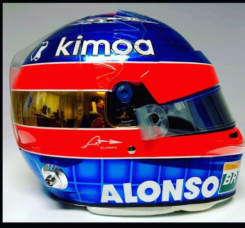 Un casco pieno di storia per l'addio alla Formula 1. Così Fernando Alonso, per la sua ultima gara, ha realizzato una livra a metà tra quella del 2001, anno del suo esordio, e quella attuale. In mezzo una striscia con le 32 vittorie in carriera conquistate nel circus.