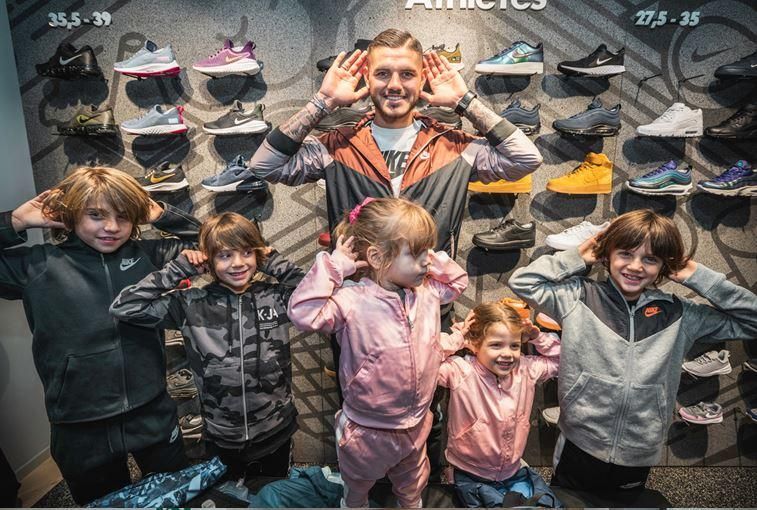 Al Nike Store è arrivata la famiglia Icardi al gran completo: Mauro e Wanda insieme ai piccoli Benedicto, Valentino, Constantino, Isabella e Francesca per un evento dedicato ai piccoli fan nerazzurri. L'attaccante si è divertito a colorare le Air Force 1 con pennarelli e bombolette.